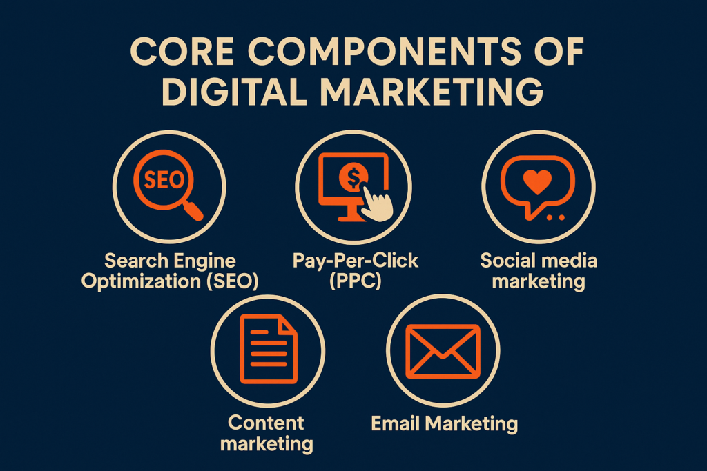 The extensive array of online platforms and methods used in digital marketing facilitates business-client connections between organisations and their intended customer groups. The digital era made it necessary to adapt marketing principles to the online world because consumers now spend most of their attention on digital platforms. Instead of depending just on one channel, the most successful digital marketing strategies mix several elements into a cohesive plan.