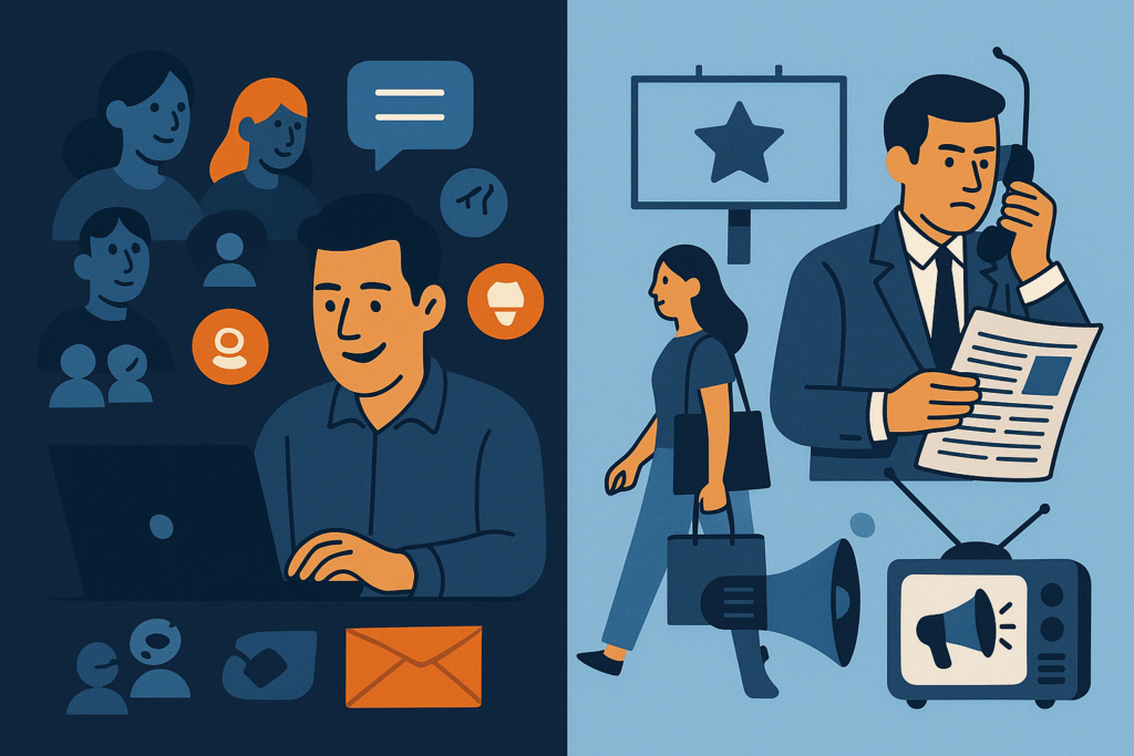 Communication Style | Interactive, two-way conversations | One-way broadcast messaging |